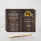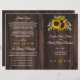 Design de cartão de casamento rústico country com buquês de girassóis em aquarela, uma forma semi-transparente com uma moldura texturizada, flechas com corações e girassóis como divisor, tudo sobre um fundo de celeiro antigo. Use a ferramenta Personalizar para adicionar suas informações. Itens correspondentes podem ser encontrados na minha Coleção de Girassóis Rústicos em Celeiro Antigo.