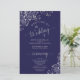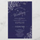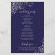 Estes programas de casamento são elegantes e saborosos, enquanto ainda são favoráveis ao orçamento. O design apresenta um local de folha fina de cinza prateada ornamentado com texto de cinza pálido sobre um fundo de cor azul marinho. A tipografia apresenta uma caligrafia antiga em script, e há espaço para detalhes sobre a cerimônia, a festa noiva e um obrigado curto para você.
