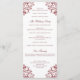 MODELO do Programa de Casamento MARSALA / VINHO (DARK RED): Seus hóspedes poderão acompanhar sua cerimônia de casamento em estilo com este belo programa de casamento vermelho escuro / marsala / vintage cners tea length. Este funciona melhor para festas de casamento menores.