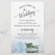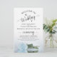 Estes programas de casamento são elegantes e saborosos, enquanto ainda são favoráveis ao orçamento. O design apresenta um rosa de cor azul ou azul-pálido, poeirado, longo solteiro, que se encontra sobre o seu lado, refletindo numa piscina de água com ondas e ondulações. A tipografia apresenta uma caligrafia antiga em escrituras negras, e há espaço para detalhes na cerimônia, na festa de noiva, e um obrigado curto para você.