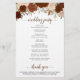 Estes programas de casamento são elegantes e saborosos, enquanto ainda são favoráveis ao orçamento. A design apresenta um bando de rosas pintados manualmente de aquarelas em tons de laranja ferrugem, número queimado e pêssego de coral, cercados por folhas de eucalipto e folhagem de jardim. A tipografia apresenta uma caligrafia antiga em script, e há espaço para detalhes sobre a cerimônia, a festa noiva e um obrigado curto para você.