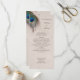 Uma bela pena azul, bronzeada e verde de pavão embeleza a parte superior esquerda deste cartão formal do programa de casamento. Seu texto personalizado está em marrom no topo direito e no centro. Deixámos muito espaço para o seu próprio texto e estilo personalizados. Use Personalizar para alterar a fonte, o tamanho, o espaçamento, o local etc. As imagens e o texto são colocados sobre uma cinza de luz angustiada e sobre um fundo que complementa as cores das penas. A parte traseira do convite corresponde à parte frontal sem o texto, mas você pode adicionar seu próprio texto escolhendo Personalizá-lo. Este cartão combina com o Convite de Casamento da Fronteira de Penas de Pavão e outros produtos de casamento na nossa loja.