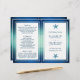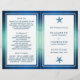 Estes programas duplos são perfeitos para qualquer casal planejando um casamento romântico pelo mar. O design apresenta um fundo de aquarela em tons azuis e verdes com uma estrutura decorativa de borda branca e é finalizado com um delicioso motivo de estrela. O design simples pode ser personalizado para se adequar ao seu evento especial e será a ordem de serviço perfeita para qualquer festa temática na praia, incluindo chás de panela, noivados, chás de casamento, festas de aniversário e muito, muito mais.