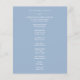 Este programa de casamento de praia mostra cavalos-marinhos aquosos em tons de azul empoeirado. Os nomes da noiva e do noivo e a linha cronológica do programa de casamento são a tipografia clássica do sans. A ordem processiva do casamento reverte para um azul sólido. Esta design dupla face é uma escolha moderna para casamentos marítimos e náuticos. Arte e design por Victoria Grigaliunas de Do Tell A Belle. Para mais informações sobre este tema do casamento, visite www.zazzle.com/dotellabelle