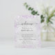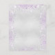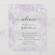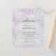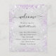Um programa de casamento moderno e elegante, linha do tempo. Fundo de aspecto fino prateado decorado com pó brilhante prateado roxo e falso. Personalize e adicione seus nomes e detalhes do casamento. Letras pretas coloridas.