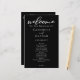 Esses programas de casamento preto personalizados e chicos apresentam uma elegante tipografia branca personalizada e um layout minimalista para sua cerimônia de inverno à noite. Adicione os detalhes da sua festa noiva atrás.
