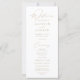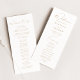Um programa de casamento elegante com um roteiro de caligrafia dourada moderno para criar um design perfeito para casamentos de todos os estilos e estações. Personalize a frente do programa de casamento moderno com seus nomes, data e local do casamento, e ordem da cerimônia. O programa de casamento simples reverte para mostrar uma lista de sua festa de casamento. A design foi criada para coordenar com a nossa coleção de casamento da Elegância Moderna.