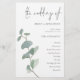Programa de Casamento de Script Eucalyptus Elegante para Orçamento. Tamanho de 5,5" x 8,5" a um preço orçamentário, em uma elegante estoque LINEN de 110 lb - para um sentimento de luxo pelo valor do excelente, isso é perfeito para programas, convites e menus, etc. Este alternativo de tamanho de orçamento também está disponível em outras opções de papel. O estoque do cartão SEMI-GLOSS de 110 lb tem aproximadamente a mesma espessura do cartão postal, portanto também funciona bem para convites. O papel FELT de 100 lbs é colorido por buff, NÃO branco, então adiciona um toque rústico. O estoque de papel MATTE de 80 lb é branco brilhante, para impressão nítida, excelente para seus menus e programas, enquanto o papel SATIN de 80 lb é fino e leve, ideal para gabinetes. NOTE QUE OS ENVELOPES OPCIONAIS SÃO UM POUCO MAIORES EM TAMANHO A 6,75" x 9" aprox. As folhas de cor d'água de artsy eucalipto estão em cada lado. O cabeçalho principal está em um script na moda set e o resto do texto que você pode personalizar facilmente. Se precisar de assistência para a edição deste design, por favor, envie-me uma mensagem.