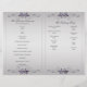 Programa de Casamento - Roxo Ornamentado e Roxos Florais Prateados numa Coleção de Casamentos Prateados. Personalize com suas próprias informações. Há espaço para uma citação ou outro texto no verso. Se você não quiser, apenas apague. Se você precisar mover o texto ou alterar a fonte, o tamanho ou a cor do texto, clique em Personalizá-lo. Se precisar de ajuda, clique em "Perguntar ao Designer" na descrição do produto. Escolha "Pergunta de design personalizado". Há muitos itens correspondentes neste tema, mas se você não vir algo de que precisa, entre em contato comigo - as ordens personalizadas são bem-vindas! Observe que isso não é alto ou gravado, mas uma imagem gráfica plana. Para ver a suíte de cheios, verifique minha coleção - Casamentos de Ornamentados Roxos e Prateados.