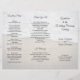 A Seacoast dobrou o programa de casamento com dunas de praia e imagens de surf. O papel Z-vezes ou triplo tem imagens de areia de praia como fundo em ambos os lados de papel de linho 8x11 polegadas (ou escolha outro tipo). Do primeiro lado, todo o texto está dividido em três seções. Ambas as seções laterais se dobrarão para dentro em torno da parte de trás do programa onde o texto "Ordem da Cerimônia" é impresso - este será o centro de dentro.
