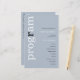 Programa Simples de Casamento de Texto Azul. Um preço orçamentário de 5,5" x 8,5", em uma elegante estoque LINEN de 110 lb - para uma sensação de luxo pelo valor do excelente, isso é perfeito para menus, além de convites e programas, etc. Este alternativo de tamanho de orçamento também está disponível em outras opções de papel. O estoque do cartão SEMI-GLOSS de 110 lb tem aproximadamente a mesma espessura do cartão postal, portanto também funciona bem para convites. O papel FELT de 100 lbs é colorido por buff, NÃO branco, então adiciona um toque rústico. O estoque de papel MATTE de 80 lbs é branco brilhante, para impressão nítida, excelente para seus menus e programas, enquanto o papel SATIN de 80 lbs é fino e leve Um design tipográfico moderno com o Programa em grande tipografia em branco com o "r" em preto, rotacionado e à esquerda sobre um fundo azul poeirento pálido.