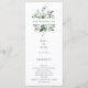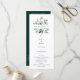 Elegante moldura de greenery em aquarela, programa de casamento. Modelo de lista de texto para ordem de eventos da cerimônia, festa de casamento e nota de agradecimento. Cor de fundo mostrada em verde floresta escuro, pode ser personalizada.