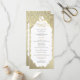 seu cartão do programa de casamento apresenta um ouro minimalista e design branco, combinando pureza com elegância eterno. A parte frontal exibe os nomes do casal como quadro de ouro contra um fundo branco limpo, criando uma aparência fresca e refinada. A página de trás apresenta os detalhes completos do casamento em um layout moderno, sem organização, acentuado com destaques de ouro. A graciosa combinação da simplicidade do branco com o luxo do ouro torna este programa perfeito para celebrações de casamento formais, elegantes e memoráveis.