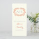 Coral orange: trecho da coral, monograma, cerimônia de casamento e programa de festas com uma moldura de coral feita de folhas, suas iniciais e texto em cinza no marfim. Este na moda moderno e elegante modelo de monograma é uma parte totalmente personalizável de um conjunto de casamento perfeito para o seu primavera ou casamento de verão.