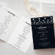 Este programa de casamento dobrado é perfeito para um casamento moderno. O design apresenta belas luzes de cordas pintadas à mão. Inclua uma citação ou mensagem curta, ordem de serviço, festa de casamento e obrigado da mensagem.