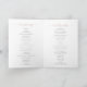 Este programa de casamento dobrado de marinho de flor silvestre verde é perfeito para um casamento rústico. O design apresenta flores silvestres cor-de-água rosa, pinceladas, amarelas e brancas dispostas em buquês elegantes. Inclua uma citação ou mensagem curta, ordem de serviço, festa de casamento e obrigado da mensagem.