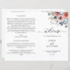 Este elegante programa de casamento apresenta um lindo buquê floral de canto com flores delicadas em uma combinação de tons rosa, rosa poeirento, pêssego, azul e azul poeirento. Borda floral interna na parte inferior. Uso de detalhes de caligrafia elegante moderna. Personalize o programa em ambos os lados. NOTA: este programa chegará plano e requer dobragem no meio para montar. A espessura do papel com o valor padrão é recomendada.
