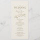 Elegante, clássico, moderno, minimalista, simples programa de casamento de ouro de marfim com aves de casal desenhadas à mão e um roteiro de caligrafia de tendências.