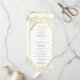 Este programa de casamento abraça uma design de ouro minimalista com um toque de charme simples. O cobrir frontal apresenta os nomes do casal como dentro de um quadro de ouro limpo, destacando elegância através da simplicidade. O verso carregar os detalhes do casamento do cheio em um layout elegante, subtilmente acentuado com ouros refinados floresce. O seu estilo subestimado e o moderno minimalismo tornam este cartão de programa ideal para casais que preferem a sofisticação do eterno com um toque gracioso e encantador.
