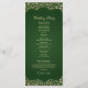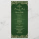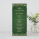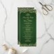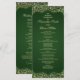 Esta design de casamento irradia a elegância do eterno com seu rico fundo verde combinado com detalhes de damascos do ouro do ornamentado. O lado frontal apresenta o programa de casamento de cheio enquadrado por intrincados florescimentos de ouro em um painel verde profundo, criando um olhar luxuoso e real. No verso, os nomes do casal são realçados dentro de um quadro circular de ouro damask, combinando perfeitamente sofisticação e celebração. A combinação verde e ouro oferece um estilo clássico, mas impressionante, ideal para cerimônias formais de casamento..02