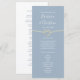 Apresentamos nosso elegante programa de casamento azul-acinzentado. Com seu design minimalista e estética moderna, adornado com um charmoso coração de corda dourada, este programa exala elegância e sofisticação atemporais.