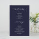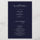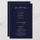 A moderna e simples tipografia minimalista tende a cerimônia azul escura do marinho e a modelo do programa de casamento do barato BUDGET apresentando um roteiro de caligrafia. +++++++++++ Fácil de personalizar com o seu texto personalizado em ambos os lados!