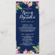 Programas personalizados de casamento. Texto branco sobre fundo azul marinho com cor d'água rosa. Design por Elke Clarke © Disponível em www.zazzle.com/monogramgallery. Personalize com sua cor de fundo e todas as suas informações pessoais para criar um programa simples, mas sofisticado, que seus contínuos podem distribuir enquanto seus convidados entram na igreja ou estão sentados onde a cerimônia ocorrerá. Ajuda as pessoas a seguirem-se durante a cerimônia, mas também atua como guardiã dos seus hóspedes. Você pode usar os campos modelo para preencher as informações sugeridas sobre a festa de casamento e a ordem do serviço e o obrigado que você envia ou selecionar "personalizar" e usar o menu editar para alterar o espaçamento de texto, as fontes, as cores conforme desejar criar seus próprios programas de casamento.