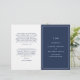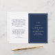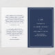 Programa de Casamento Simples dobrado com um design moderno, mas elegante, com seu monograma inicial junto com seus detalhes cercados por uma fina fronteira no cobrir frontal. A dentro tem a festa de casamento do lado esquerdo e a ordem da cerimônia do lado direito. Todos os elementos de design estão em marinho azul e branco e podem ser alterados na ferramenta de edição design. Um design chic e na moda que é excelente para um casal minimalista. Estes programas de casamento baratos são impressos em folhas de papel para uma opção de orçamento de excelente.