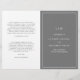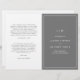 Programa de Casamento Simples dobrado com um design moderno, mas elegante, com seu monograma inicial junto com seus detalhes cercados por uma fina fronteira no cobrir frontal. A dentro tem a festa de casamento do lado esquerdo e a ordem da cerimônia do lado direito. Todos os elementos de design estão em cinza média e branco e podem ser alterados na ferramenta de edição design. Um design chic e na moda que é excelente para um casal minimalista. Estes programas de casamento baratos são impressos em folhas de papel para uma opção de orçamento de excelente.
