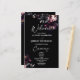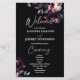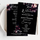 Programa de casamento elegante e elegante, camponeses negros de burgundy no escuro plano de fundo, papelaria e serviço