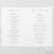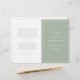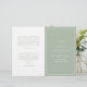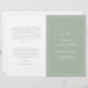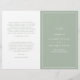 Programa de Casamento Simples dobrado com um design moderno, mas elegante, com seu monograma inicial junto com seus detalhes cercados por uma fina fronteira no cobrir frontal. A dentro tem a festa de casamento do lado esquerdo e a ordem da cerimônia do lado direito. Todos os elementos de design estão em verde e branco de sábio e podem ser alterados na ferramenta de edição de design. Um design chic e na moda que é excelente para um casal minimalista. Estes programas de casamento baratos são impressos em folhas de papel para uma opção de orçamento de excelente.