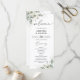 O Programa de Casamento Elegante Eucalipto apresenta folhagens graciosas de eucalipto combinadas com um layout limpo e refinado, criando um design atemporal e sofisticado. Este programa é perfeito para guiar os convidados durante a sua cerimônia, complementando temas de casamento inspirados em folhagens, jardins ou natureza. Seu estilo botânico elegante coordena-se lindamente com papelaria de casamento correspondente, ajudando a criar um conjunto de casamento coeso e polido.