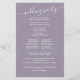 Essa design apresenta um programa de casamento, com um roteiro elegante, minimalista, simples, de caligrafia, design de tipografia, com lilac e lavanda floral