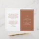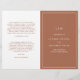 Programa de Casamento Simples dobrado com um design moderno, mas elegante, com seu monograma inicial junto com seus detalhes cercados por uma fina fronteira no cobrir frontal. A dentro tem a festa de casamento do lado esquerdo e a ordem da cerimônia do lado direito. Todos os elementos de design estão em terracota / laranja / ferrugem queimada e brancos e podem ser alterados na ferramenta de edição de design. Um design chic e na moda que é excelente para um casal minimalista. Estes programas de casamento baratos são impressos em folhas de papel para uma opção de orçamento de excelente.
