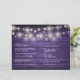 Um programa de casamento rústico elegante com lindas luzes de corda em um fundo de madeira roxa rústica. Adicione os detalhes especiais da cerimônia de casamento em tipografia chic e elegante. Dobre à mão para criar um belo programa de casamento dobrado. Criado por Thisisnotme©