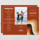 Este programa de casamento triplo de 70 anos apresenta linhas onduladas em castanho e laranja, lembrando o rancho 70 e o estilo de vida hippie. Folha de papel do programa "Vintage" com triplicado branco ao lado das linhas curvas do abstrato. Alcance junto com este design de som terrestre divertido.