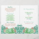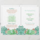 Esses programas dobrados são perfeitos para qualquer casal planejando uma romântica celebração de casamento botânica. O design apresenta um buquê suculento de tendência em um simples fundo branco limpo com texto coordenado por cores. O design simples pode ser personalizado para se adequar ao seu evento especial e será a ordem de serviço perfeita para qualquer festa temática floral, incluindo chás de panela, noivados, chás de casamento, festas de aniversário e muito, muito mais.