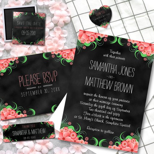 Pink Floral Hibiscus Black Chalkboard Wedding SetCriado por Marina