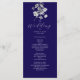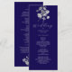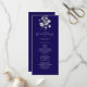 Celebre sua cerimônia com estilo com este elegante programa de casamento, apresentando um fundo azul real profundo e ilustrações florais prateadas graciosas. O layout fornece um formato limpo e fácil de ler para seus convidados, tornando-o uma escolha sofisticada para casamentos de inverno e formais.