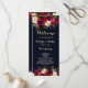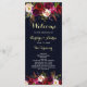 Cartão de Programa de Casamento Estilo Boêmio com ilustração em aquarela de peônias e rosas burgundy, vermelhas e rosadas com sutil detalhe de penas. Este é perfeito para convite de casamento de outono e inverno. Itens combinando também estão disponíveis.