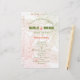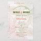 Programa de cerimônia com fundo tropical em verde-palma e coral. Perfeito para o seu casamento na praia ou na ilha.