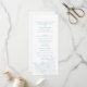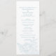 Seu dia especial merece detalhes especiais. Este programa azul e branco apresenta uma tipografia clássica e um desenho azul de linha floral impressionante.