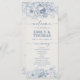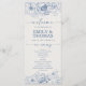 O Floral Chinoiserie Wedding Program é um elegante cartão de programa de casamento projetado com padrões de Chinoiserie e sofisticados detalhes florais. Este cartão fornece aos convidados informações sobre a cerimônia e eventos, ajudando-os a segui-los facilmente durante o dia do casamento. Com seu estilo clássico e refinado, este programa de casamento pode ser personalizado para corresponder ao tema e às cores do seu casamento, criando um olhar coeso e elegante para a sua papelaria de casamento.
