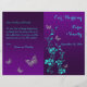 Este programa de casamento floral azul e roxo de 8,5"x11" tem borboletas prateadas, flores e vinha nele que correspondem ao convite de casamento mostrado abaixo. Ele foi projetado para ser dobrado pelo centro. ****POR FAVOR, OBSERVE que o papel de mais alto é um estoque de cartão e não se dobra bem. Todo o texto é personalizável. Envie um e-mail para niteowlstudio@gmail.com se precisar de assistência para a personalização deste ou se tiver alguma dúvida ou solicitações para itens correspondentes.