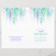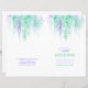Flores de vinha em cascata, de dois lados, molham a arte aquática num programa de casamento branco. Bonito tons azuis e rosa. Edite este programa de casamento com seu próprio nome, datas, texto da cerimônia, assistentes de festa de casamento e obrigados. Um programa simples, mas elegante, simplesmente substitua o texto de amostra pelos detalhes de suas informações de casamento e dobre programas ao meio na entrega. Programa moderno e romântico de cerimônias de casamento. Pintura a aquarela original e design por Sarah Trett para www.mylittleedenweddings.com