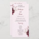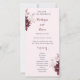Isso é personalizável e um elegante programa de casamento claro e embaçado com flores de burgandy e rosa poeirentas a aquarelas em um design de fundo rosa claro e empoeirado. É perfeito para uma celebração floralromântica de casamento.