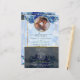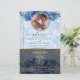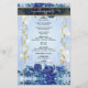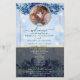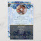 Pegue um programa de casamento único que você pode personalizar completamente para torná-lo especial e exclusivo para o seu casamento. o design vem com um quadro onde você pode colocar sua foto com seu homem ou com sua mulher, o quadro que vem com o miçanga complementará a foto do dentro casal e fará o cartão parecer tão elegante. Moderno e elegante brilho com flores azuis e sotaque dourado.
