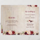 Crie o programa de casamento perfeito com este modelo "Rustic Woodgrain Look Burgundy Floral". Este design de alta qualidade é fácil de personalizar para ser exclusivamente seu! (1) Observe que as placas chegam achatadas e você precisará dobrar o meio para convertê-las em papéis dobrados. (2) Para mais personalização, clique no botão "Personalizar" e use a nossa ferramenta design para modificar este modelo. (3) Se precisar de ajuda ou itens correspondentes, entre em contato comigo.