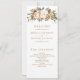 Surpreenda seus convidados com este elegante programa de casamento com belas flores e folhas de pinheiro rústicas.