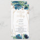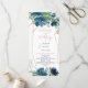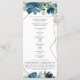Programa de Casamento Floral de Ouro Azul Elegante